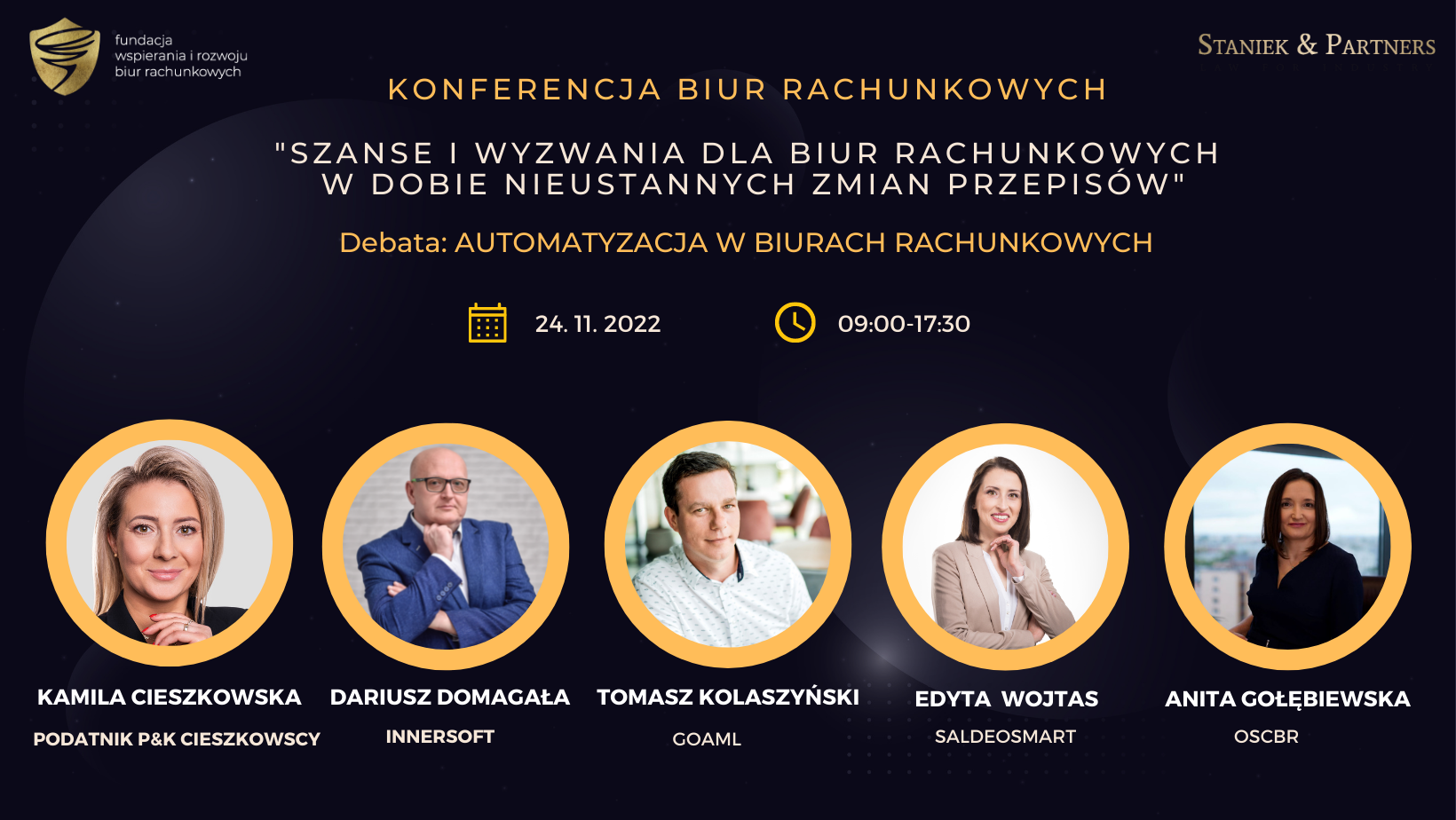 Idealne połączenie mojej pracy i pasji. Występuję na konferencjach i szkoleniach, głównie dla branży biur rachunkowych.