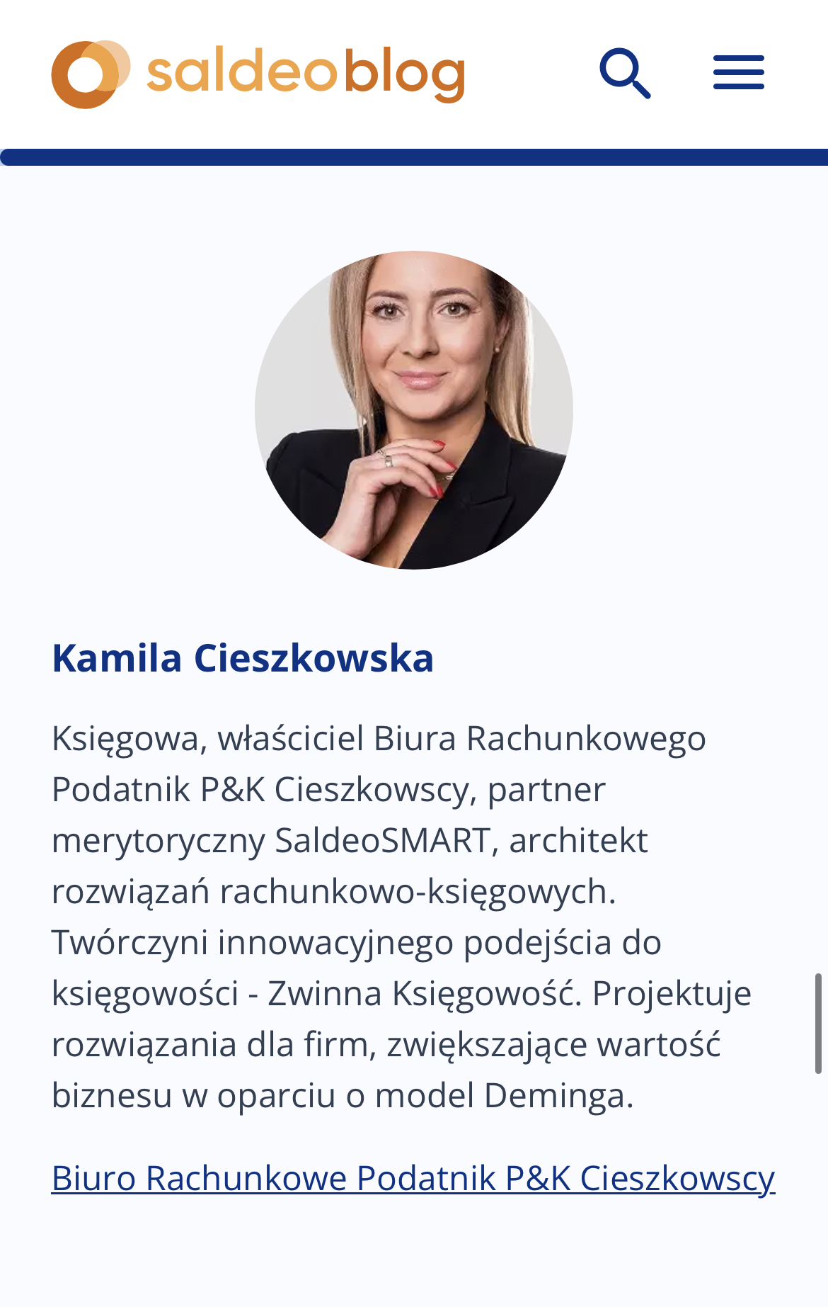 Od ponad dwóch lat pełnię rolę partnera merytorycznego SaldeoSMART, pisząc artykuły eksperckie na blogu skierowane do właścicieli biur rachunkowych.